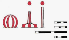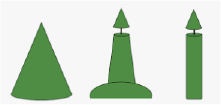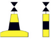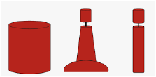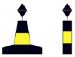 | Un cilindro, castillete o espeque con cilindro en el tope | Un cono, castillete o espeque con cono en el tope |