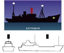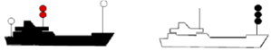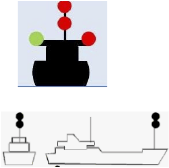 | – . . | buque sin gobierno, maiobr. restring., restring. por calada, de vela, de pesca (tb fondeados) |